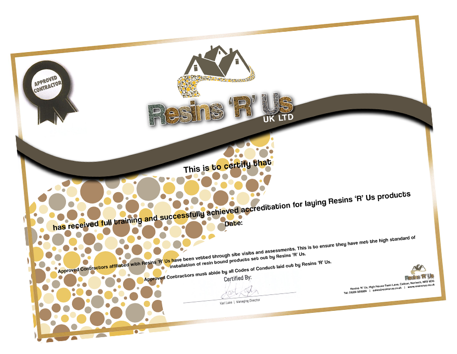 Once you become an approved Resins ‘R’ Us Resin Bound installer, you will automatically be added to our Resins ‘R’ Us approved installer database on our website for potential future customers to find you as well as being promoted by us via our social media channels and when speaking to our clients.