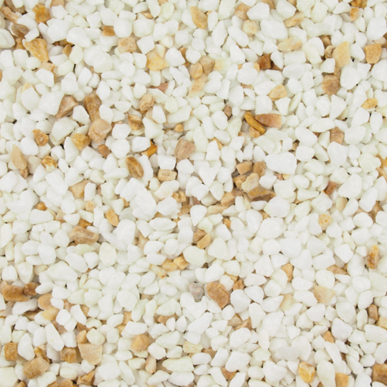 Brightstone 3-8mm. A mix of white marble with a small amount of buff quartz for a more distinctive speckled finish.