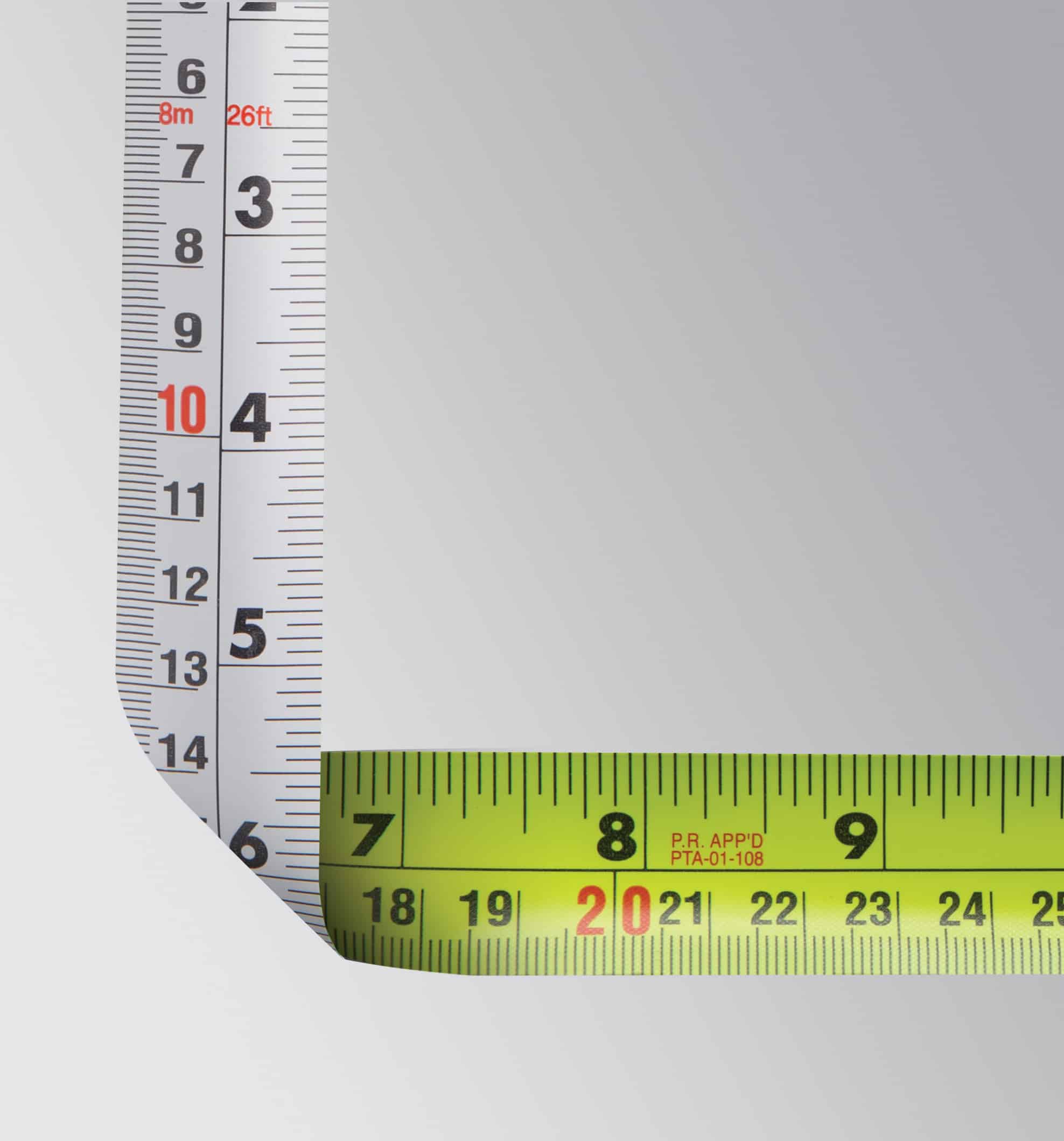 - Patented Hi Vis Blade – Easy to read measurements in most lighting conditions