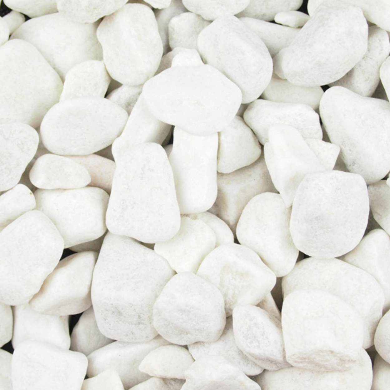 White Spanish marble pebbles tumbled to produce a lovely unique and distinctive product. These beautiful Polar White Pebbles are smooth, rounded and bright, with the occasional hints of cream running through them.