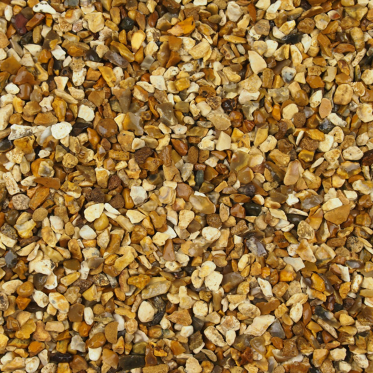 Yellow Spar 6mm. A yellow, rounded spar with a very warm and mellow finish. Best used on a cream or buff mortar.